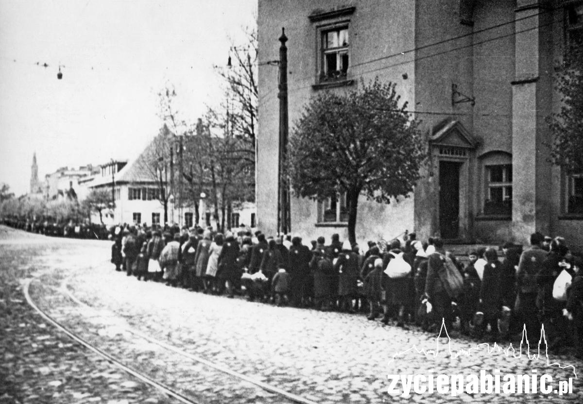 16 maja 1942 r. Żydom pozwolono zabrać tylko mały podręczny bagaż. Dostali polecenie stawić się na ul. Konstantynowskiej. Opornych hitlerowcy siłą wyciągali z mieszkań.