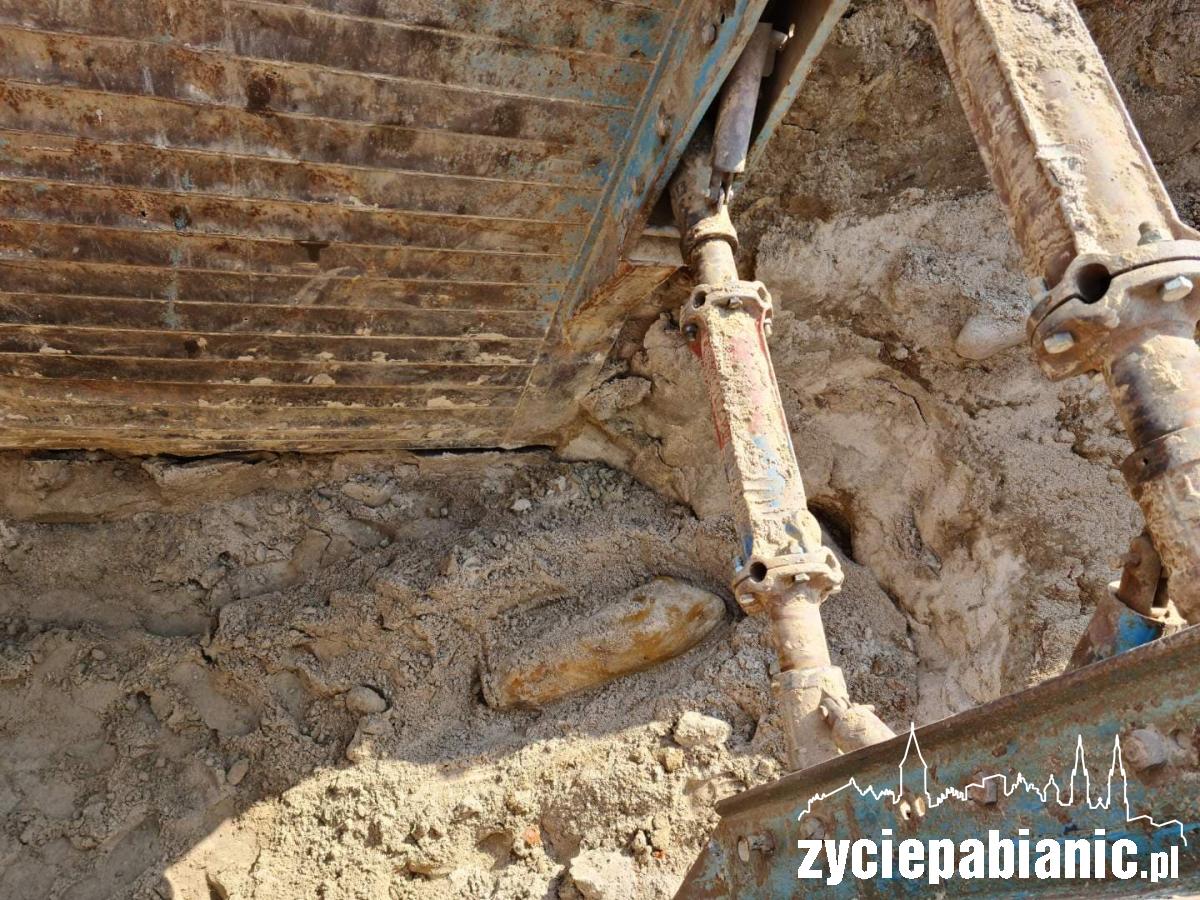 Podczas prac, drogowcy znaleźli w ziemi niewybuch. To, według wstępnej oceny, bomba lotnicza o wadze ponad 50 kg i około metra długości. Miejsce znaleziska zasłonięte zostało plandeką.