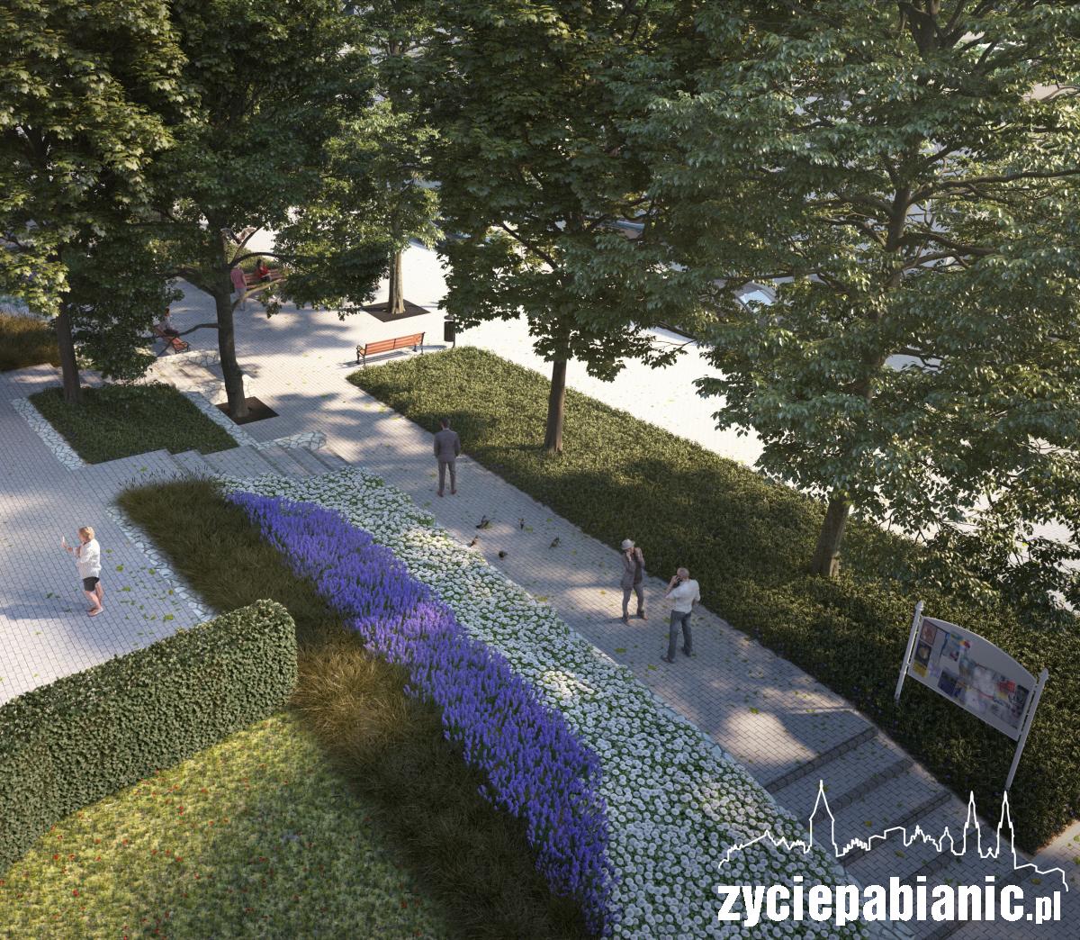 Najpierw zostaną wykonane prace budowlane, czyli: wymiana chodników, remont murków i schodów oraz montaż elementów małej architektury. Drugi etap obejmuje sadzenie drzew i krzewów, a zamiast tradycyjnego trawnika, rabat roślin okrywowych.