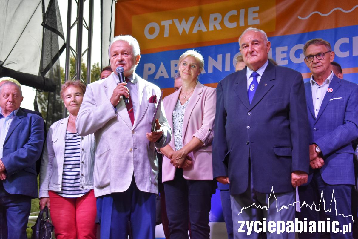 Symboliczną wstęgę przed wejściem do nowo wybudowanego obiektu przecięli: prezydent Grzegorz Mackiewicz, Krzysztof Grzegorek, prezes Pabianickiego Klubu Sportów Wodnych, retman Marcin Kwiatkowski, Maciej Tomaszewski, komendant Hufca ZHP, Dorota Becht, członek zarządu PKSW oraz Piotr Adamski, dyrektor MOSiR-u.
