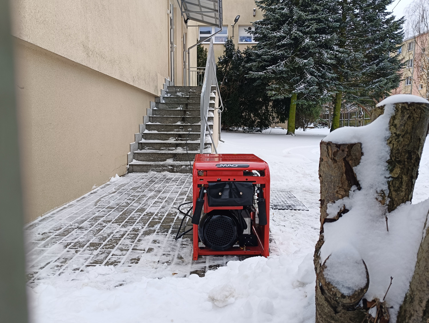 Około godz. 10.30 było jej 5-10 cm. Oprócz motopompy strażacy użyli osuszaczy i specjalnego odkurzacza.