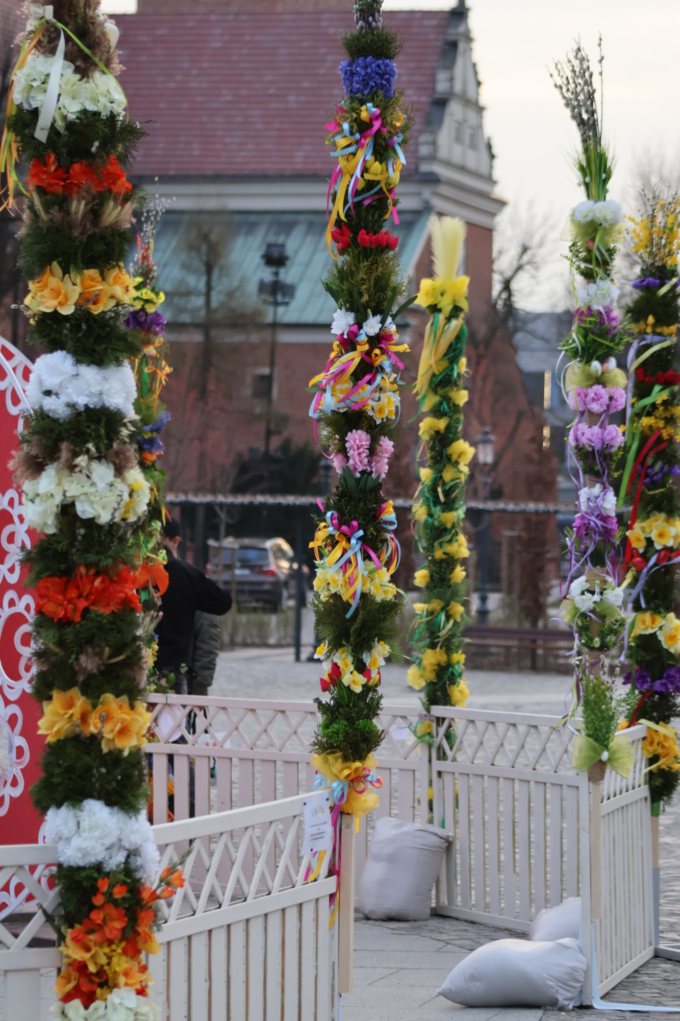 Otaczają je wysokie, bogato przystrojone palmy wielkanocne - każda unikalna i każda ma innego autora. To społeczności pabianickich placówek miejskich: Szkoły Podstawowej nr 3, SP 5, SP 8, SP 9, SP 13, SP 14, SP 16 oraz przedszkoli miejskich numer: 3, 14, 16.