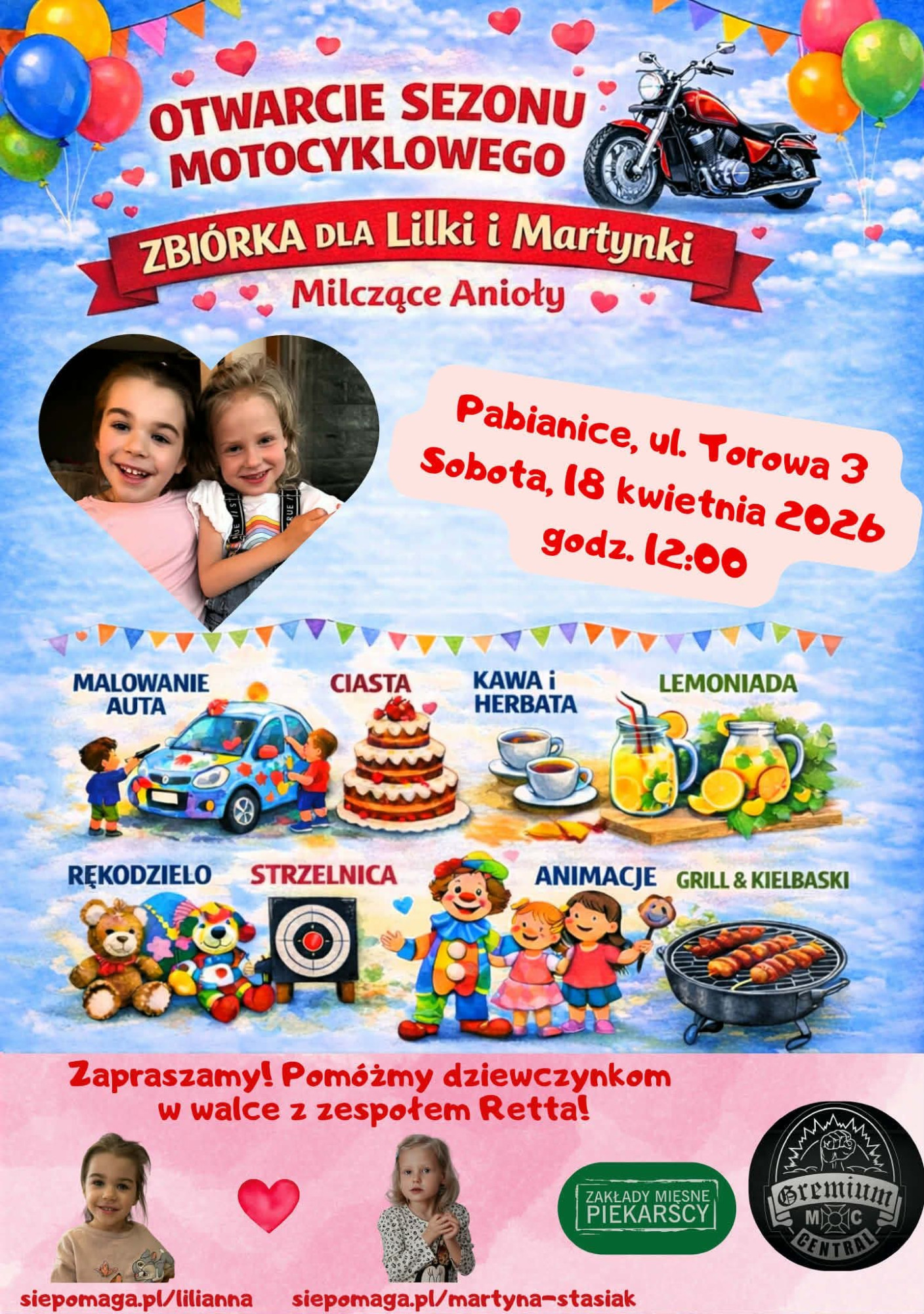 18 kwietnia Pabianice staną się miejscem wyjątkowego wydarzenia, które połączy pasję do motocykli z realną pomocą potrzebującym. Otwarcie sezonu motocyklowego przy ul. Torowej 3 będzie miało szczególny wymiar. Jego celem jest wsparcie dwóch dziewczynek walczących z zespołem Retta - Martynki Stasiak z Pabianic i Liliany Pożarlik ze Strykowa