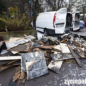 W nocy z wtorku na środę strażacy dostali zgłoszenie o płonącym samochodzie. Była godzina 3.12. Na parkingu przy Nawrockiego, naprzeciwko ryneczku, palił się mercedes vito. W samochodzie były dewocjonalia, prawdopodobnie przeznaczone na sprzedaż.