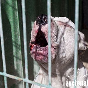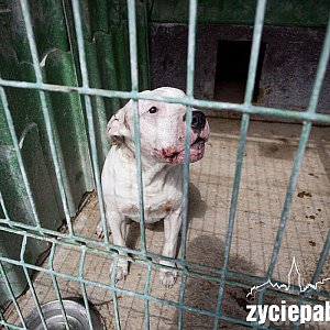 Pies "amstafowaty" był bardzo agresywny. Na strażników i pracowników ROM-u wyskoczył zza zasłonki. Został złapany w pętlę i wywieziony do schroniska dla zwierząt. Udało się go pojmać dopiero za trzecim razem.