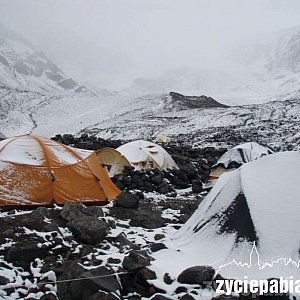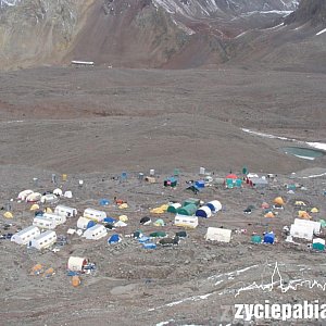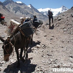 ...to może za dużo powiedziane. Ale było bardzo ciężko. Jak już wspominałem, nasza wyprawa trwała 3 tygodnie, a samo wejście na szczyt „Kamiennego Strażnika” - około 10 dni. Wspinaliśmy się z base campu (obóz główny) Plaza de Mulas (4.300 m), zatrzymując się po drodze w obozach przejściowych: Canada, Nido de Condores (5.400  m), Berlin (6.000 m) i schronach – Elena oraz Indepedencia (6.350 m). Te schrony i obozy to w większości drewniane budy (niektóre bez dachu), dlatego trzeba mieć ze sobą namiot, który w każdej chwili można rozbić i się w nim schować.