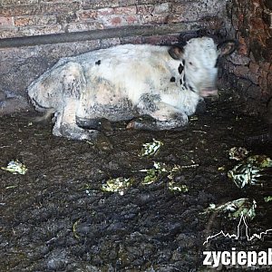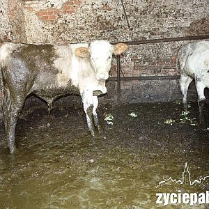 Pomieszczenia nie były przystosowane do hodowli zwierząt. Nie miały wentylacji. Krowa i dwa cielaki były oblepione odchodami. Jedno zwierzę kulało.