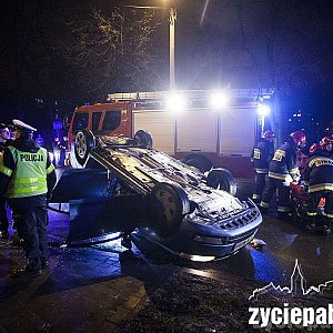O godzinie 20.00 policjanci, karetka pogotowia i strażacy zostali wezwani do wypadku. Obok Biedronki na ul. Piotra Skargi rozbił się samochód. Około 40-letni kierowca, jadący od ul. 3 Maja w kierunku Nawrockiego, rozpędzoną skodą wjechał w zaparkowane auto. Siła uderzenia była tak duża, że skoda przewróciła się na dach.