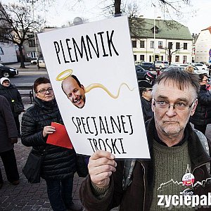Zebrani przed urzędem skandowali m.in.: "słowa z ambon to zabobony" i "chcemy edukacji, nie indoktrynacji!". Przynieśli też ze sobą czerwone kartki, które mają symbolizować niezadowolenie z władzy.