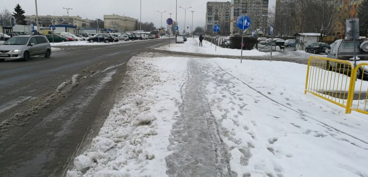 - Ten odcinek, gdzie jest ścieżka, jeszcze nie został nam przekazany - wyjaśnia Stanisław Wołosz, dyrektor Zarządu Dróg Miejskich. - Dalsza część chodnika na Nawrockiego jeszcze nie została odśnieżona. Pługi jeszcze nie zjechały, dalej pracują.