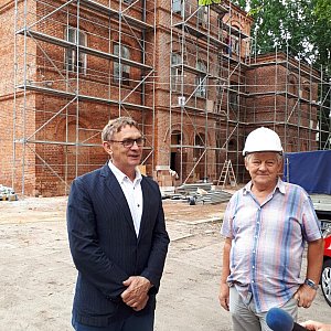 Roboty trwają wewnątrz i na zewnątrz budynku. Jest już dach. W środku zamontowano instalacje: elektryczną, wentylacyjną, wodno-kanalizacyjną i centralnego ogrzewania (budynek będzie ogrzewany przez ciepłownię miejską). Montowane są kątowniki, na których zawisną sufity i ścianki działowe pokoi. Wcześniej zabezpieczono drewniane belki stropów. Piaskowana jest ceglana elewacja budynku. Robotnicy uzupełniają brakujące cegły i zabezpieczają ściany przed wpływem warunków atmosferycznych.