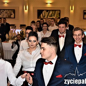 Maturzyści z Zespołu Szkół nr 1 bawili się w Hotelu Aviator. Była to bardzo kameralna studniówka, bo na 30 osób. Tańczyło 18 uczniów, kilku przyszło z osobami towarzyszącymi. Byli też nauczyciele, w tym wychowawcy obu klas: Katarzyna Kacperczyk - nauczycielka matematyki i Ewa Sztranek - polonistka.
