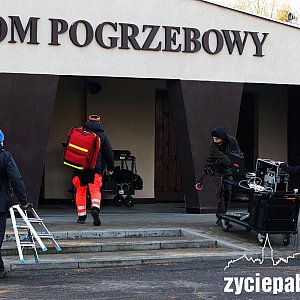 Ekipa pracowała w sąsiedztwie Domu Pogrzebowego, niedaleko wejścia głównego na teren nekropolii. Aktorom towarzyszyli statyści. Nad wszystkim czuwali reżyser Łukasz Kośmicki oraz producenci filmu. Serial „Klangor” jest produkcją CANAL+.