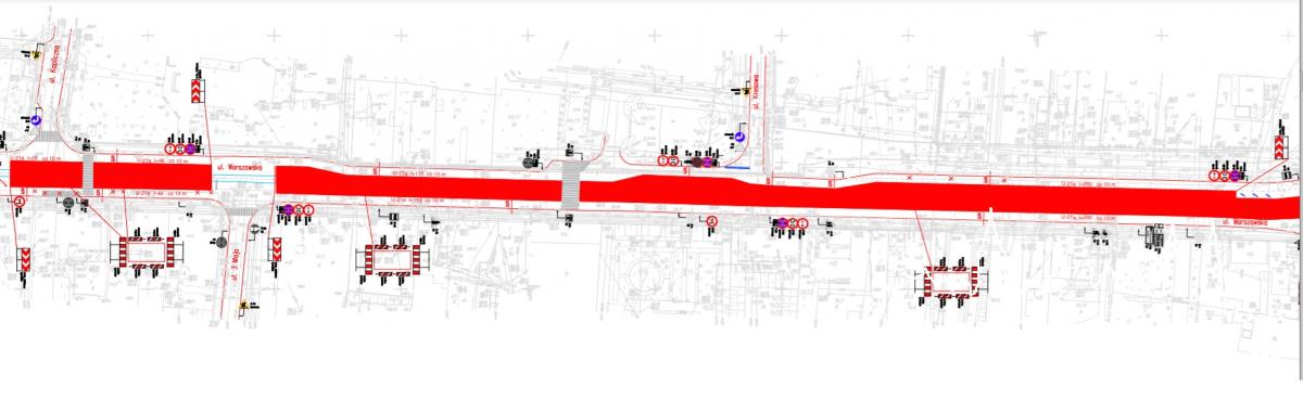 - Z uwagi na planowaną rozbiórkę torowiska, na odcinku od skrzyżowania z ul. Kapliczną do skrzyżowania z ul. Sikorskiego wygrodzona zostanie środkowa część jezdni, którą przebiega istniejące torowisko. Powyższa zmiana sprawi, że obowiązywać będzie zakaz skrętu w lewo z ul. Warszawskiej w ulice Kapliczną i Kresową – informuje spółka PROGREG InfraCity. - Na tych ulicach z kolei wprowadzony zostanie nakaz skrętu w prawo. Bez zmian funkcjonować będzie skrzyżowanie ul. Warszawskiej z ul. 3 Maja oraz z ul. Sikorskiego.