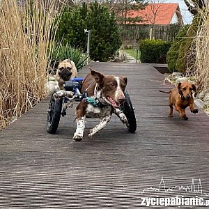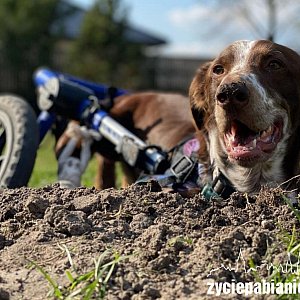 Jak pokazują zdjęcia w internecie, ulubionym zajęciem psiaka – oprócz wcinania psich smakołyków, rzecz jasna – jest kopanie dołków w ogrodzie. Nie przeszkadza mu w tym wózek podtrzymujący sparaliżowane tylne łapki. Tak pod koniec lutego rudy, energiczny psiak „odwoływał” zimę: