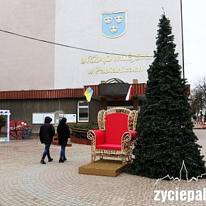 Dziś (17 grudnia) do ramki dołączył fotel św. Mikołaja. Świąteczny mebel ma 2 metry szerokości, 2,60 wysokości i 2020 ledowych lampek z efektem błysku w co piątej diodzie, pokryty jest tkaniną przystosowaną do pogody. Miasto zapłaciło za niego 17 tys. złotych.
