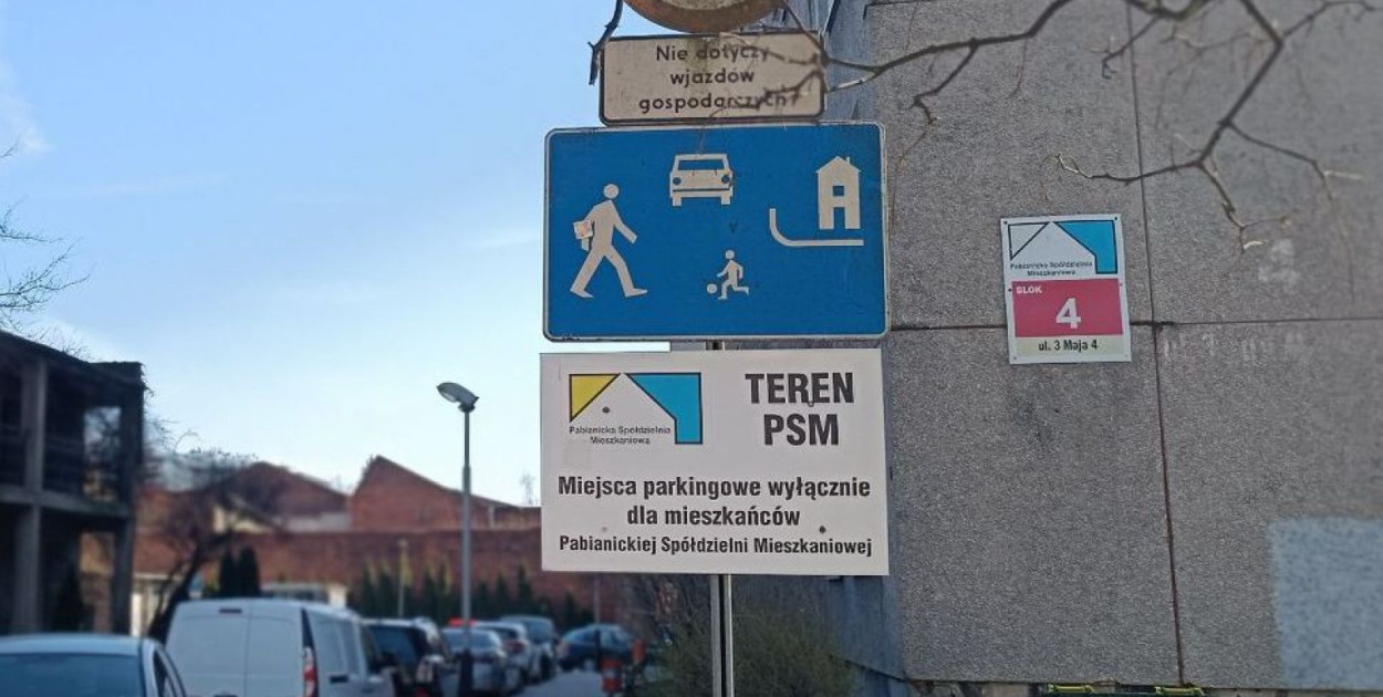 „Teren PSM. Miejsca parkingowe są wyłącznie dla mieszkańców PSM”.