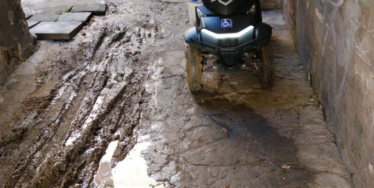 Pan Robert uważa, że powinien to zrobić pabianicki ZWiK, który prowadził tu roboty. Pabianiczanin jest niepełnosprawny, porusza się na wózku i wyjazd z kamienicy po rozmokłym terenie jest dla niego bardzo trudny.