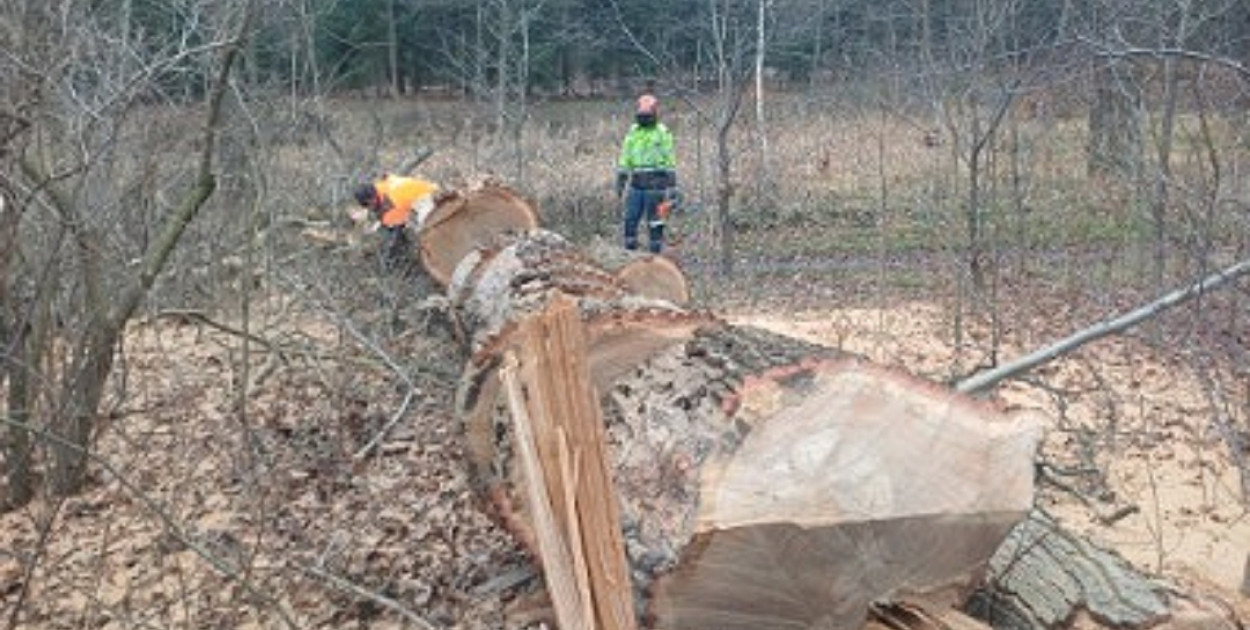 Czytelnicy zaalarmowali nas w poniedziałek (22 grudnia) o wycince drzew na terenie parku Wolności. Na dowód przesłali zdjęcie, na którym widać ekipę "drwali" ścinającą dorodny dąb. Został usunięty, bo zagrażał bezpieczeństwu.