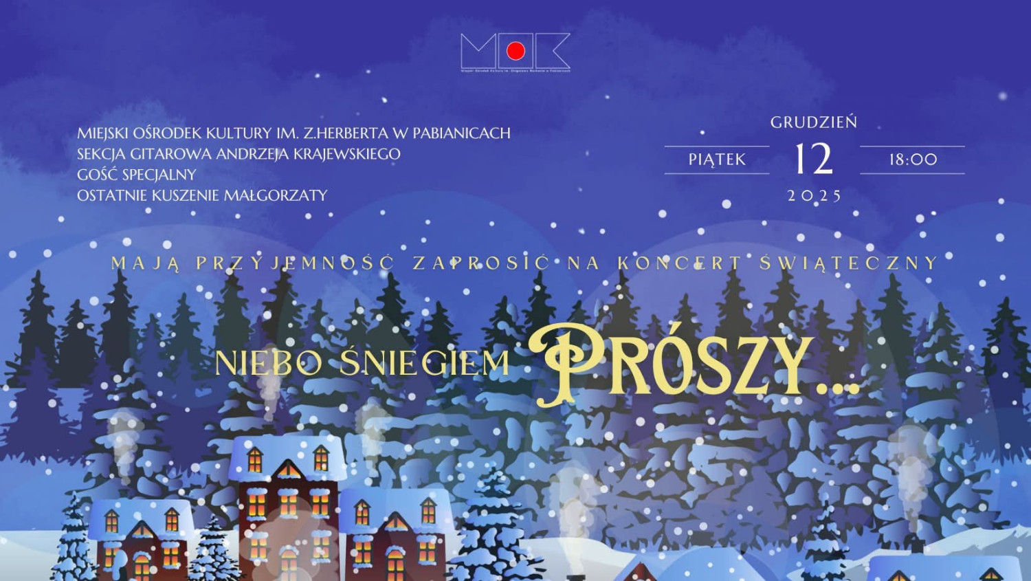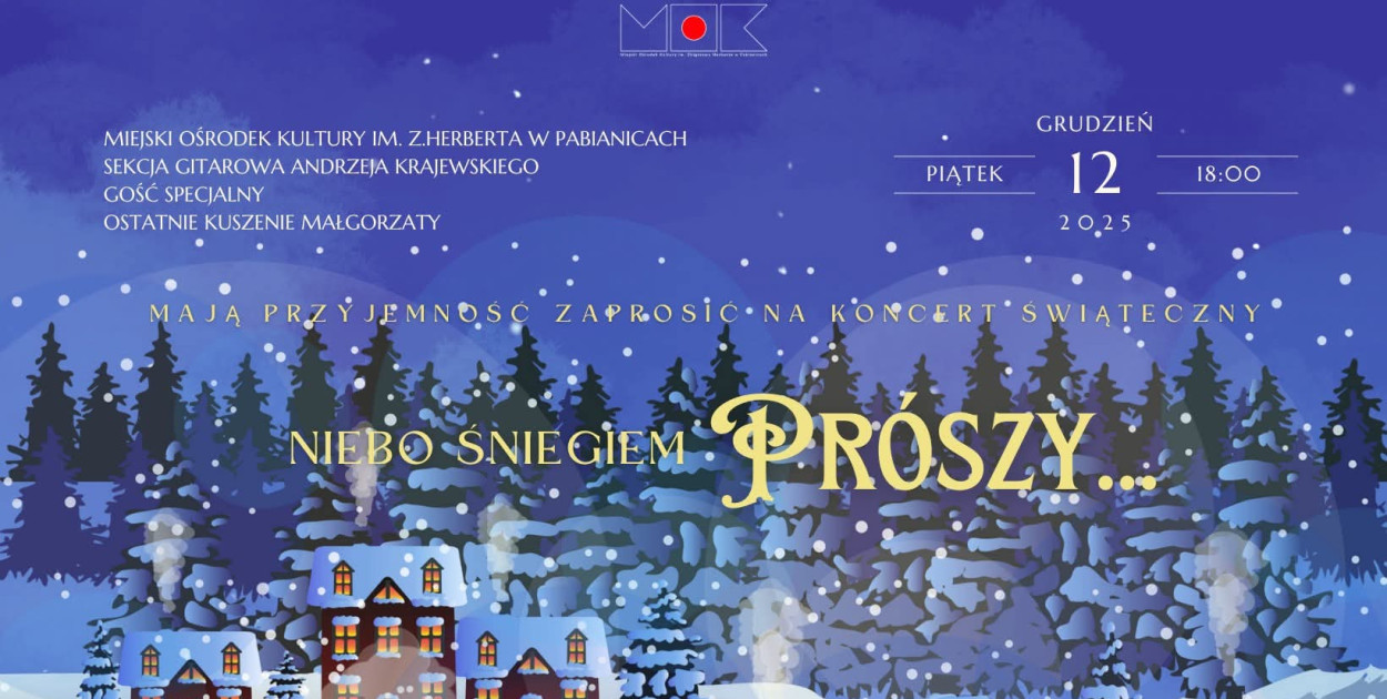 MOK w Pabianicach wraz z uczestnikami zajęć gry na gitarze prowadzonych przez Andrzeja Krajewskiego, zespołem Ostatnie Kuszenie Małgorzaty oraz Gościem Specjalnym zaprasza na koncert „oprószony śniegiem”, nastrojowy, pełen ciepła i zimowej magii.