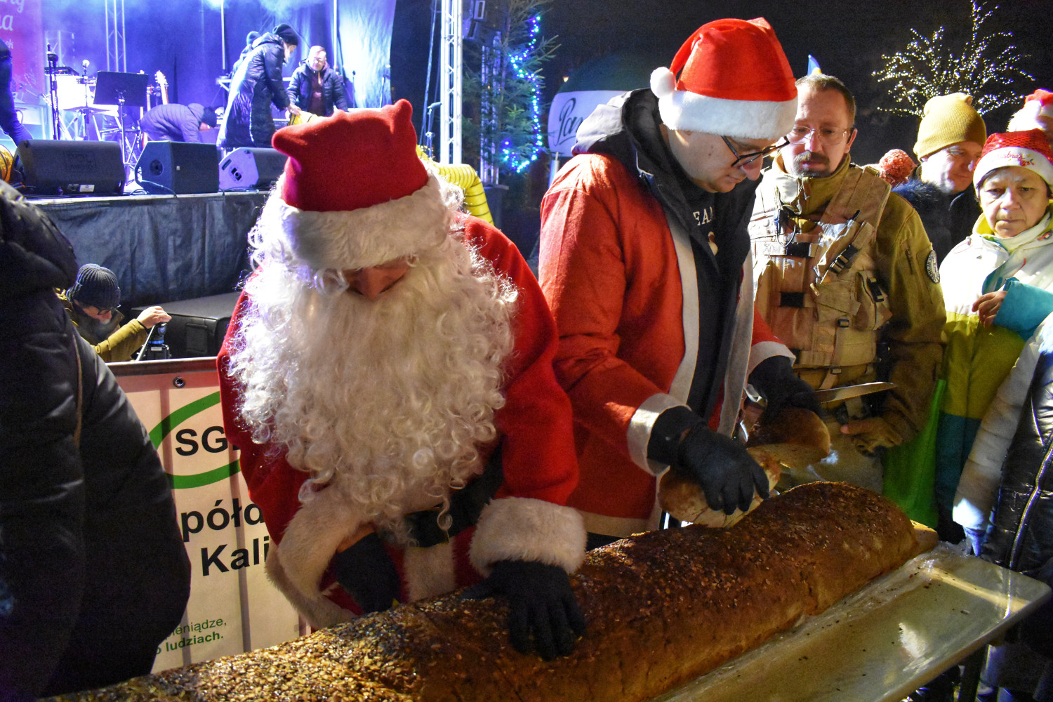 Tradycyjne łamanie się opłatkiem zostało zastąpione, jak co roku, dzieleniem się chlebem. Duże bochenki kroili pomocnicy świętego Mikołaja, rozdając je zgromadzonym na rynku. Harcerze przekazali również Światełko Pokoju na ręce wiceprezydent miasta, podkreślając ideę wspólnoty i świątecznej życzliwości.