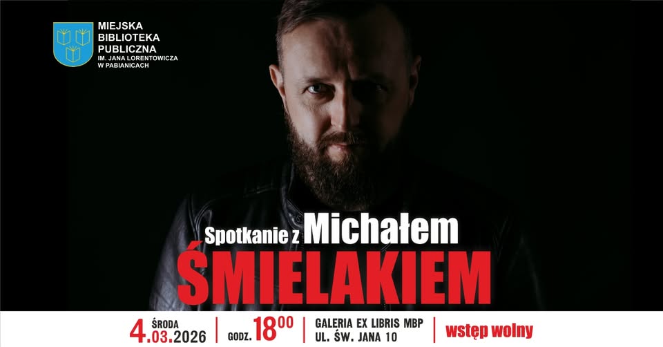 Autor bestsellerowych kryminałów i thrillerów, laureat najważniejszych nagród gatunkowych i twórca mrocznych historii osadzonych w małych społecznościach, będzie gościem Miejskiej Biblioteki Publicznej w Pabianicach. 4 marca w Galerii Ex Libris odbędzie się spotkanie z Michałem Śmielakiem. Wstęp jest wolny.