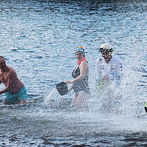 W tym roku warunki atmosferyczne skutecznie ograniczyły frekwencję. Na wejście do wody zdecydowało się jedynie kilkoro śmiałków - wśród nich, jak co roku, nie mogło zabraknąć morsów pabianickich.