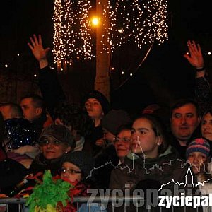 Pokaz ogni sztucznych był imponujący. Niebo przez 12 minut mieniło się od kolorowych ogni. O północy na scenę weszli: prezydent Zbigniew Dychto, przewodniczący Rady Miejskiej Grzegorz Mackiewicz, sekretarz miasta Adam Marczak i naczelnik Paweł Piechota. Panowie z szampanami w dłoniach złożyli mieszkańcom życzenia szczęśliwego nowego roku.
