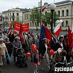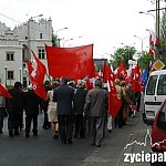 Prawie 200 osób z orkiestrą przeszło w pochodzie pierwszomajowym ulicą Zamkową na Stary Rynek. Wiec odbył się przed pomnikiem. Później pabianickie organizacje lewicowe (SLD, PPS, Racja Polskiej Lewicy