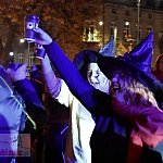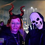 Deszcz próbował przestraszyć imprezowiczów, ale nie dał rady z taką ekipą 💪 Pod gołym niebem, przy dźwiękach serowanych przez DJów ze ustawionej na przyczepie, Stary Rynek zamienił się w prawdziwe królestwo duchów, wiedźm, upiorów i diablic. Migające światła, tańce wśród mgły...