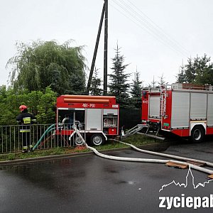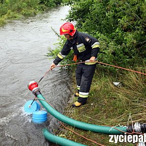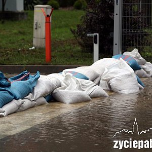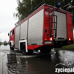 - Próbujemy przerzucić wodę z terenu, na którym się rozlewa, bo tam nie ma odpływu i wciąż się gromadzi – mówi st. kpt. Michał Kuśmirowski ze straży pożarnej. – Rura w tej ulicy jest zbyt małej średnicy i nie jest w stanie zebrać tej wody.