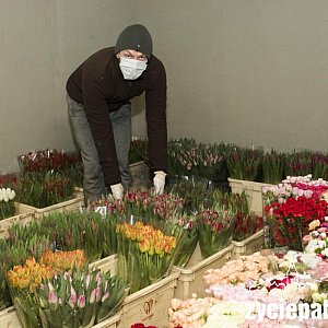 Pani Krystyna przy tulipanach uwijała się od rana do nocy. Miały rozkwitnąć przed Wielkanocą, by ozdobić nasze domy. Plany pokrzyżowała epidemia. Teraz pani Krystyna uwija się przy cięciu kwiatów. Wynosi je do chłodni. Nie ma gdzie sprzedać. Giełda kwiatów nie pracuje. Kwiaciarnie są zamknięte