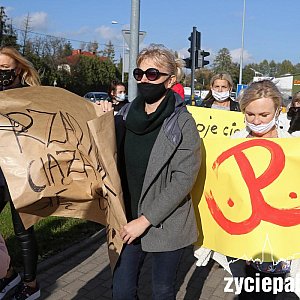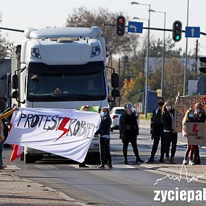 Dziś w południe główne skrzyżowanie w Dobroniu opanowały kobiety. Trzymały transparenty. Choć była ich garstka skutecznie utrudniły ruch na drodze wojewódzkiej nr 482.