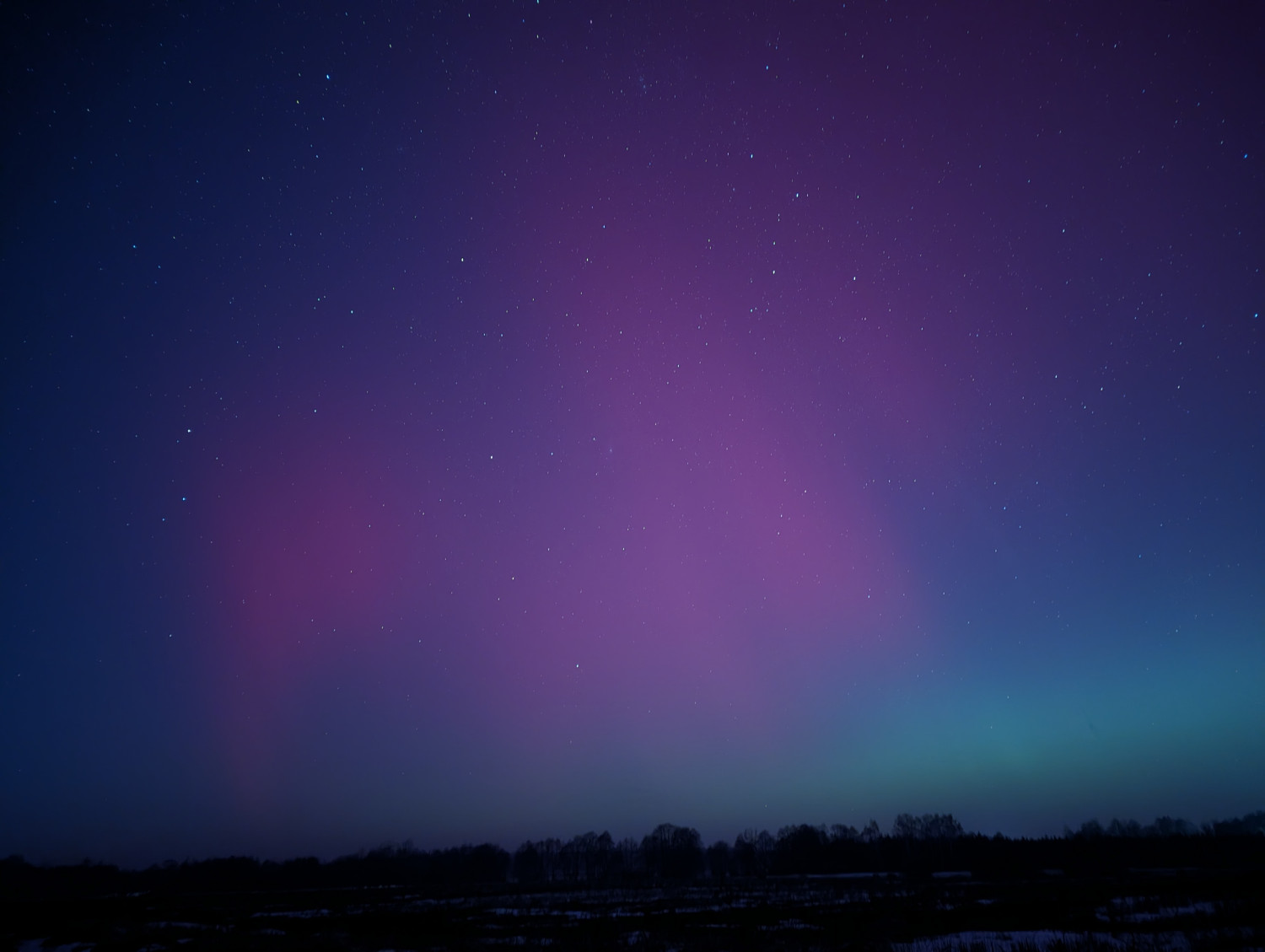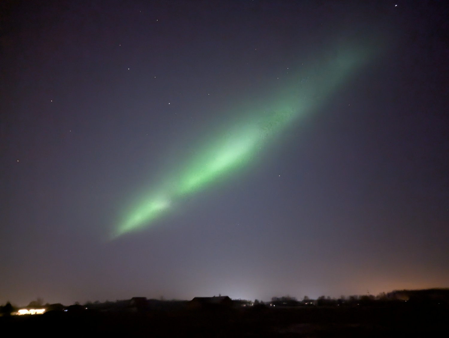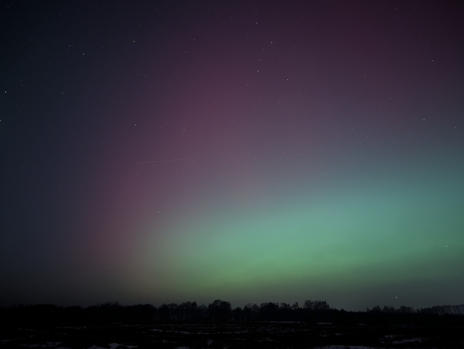 Zjawisko kojarzone zwykle z daleką północą mogliśmy podziwiać nad naszymi głowami. Nad horyzontem pojawiły się subtelne pasma zieleni i różu, które na tle gwiazd tworzyły niemal nierealny krajobraz 💚💜.