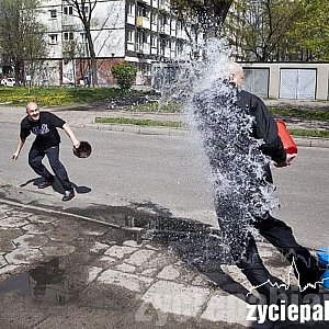 Stare Miasto zaspało i o tradycji lania wodą zapomniało. Lany poniedziałek mamy za to na Skłodowskiej. Tutaj przy hydrancie toczy się prawdziwa bitwa na wiadra z wodą.