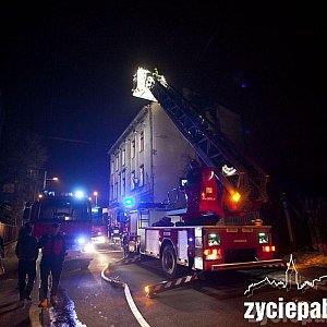 Strażacy ewakuowali mieszkańców. Na miejscu był podnośnik, kilka wozów straży pożarnej, straż miejska i policja.