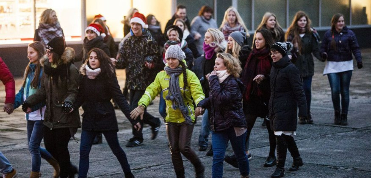 Taniec poprowadził Piotr Pająk, wodzirej. Wolontariusze zatańczyli kilkuminutowy układ. Pary rozchodziły się, mijały, robiły węże i przechodziły tunelem.