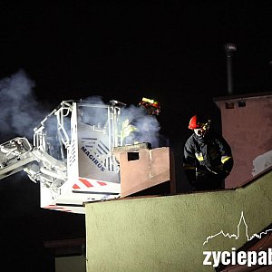 Na miejsce pojechały trzy zastępy strażaków. Akcja gaśnicza trwała godzinę i piętnaście minut. Strażacy wybrali i wynieśli palące się sadze na zewnątrz i przelali je wodą.