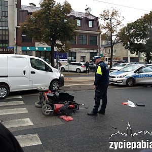 Poszkodowany to niepełnosprawny mężczyzna, który poruszał się na wózku elektrycznym. Na razie policja ustala przebieg zdarzeń i rozmawia ze świadkami. Wiadomo, że potrącił go kierujący samochodem dostawczym marki nissan. Mężczyznę na wózku na pasach przepuszczał kierujący samochodem marki peugeot. Nissan ma rozwalony przód z prawej strony.