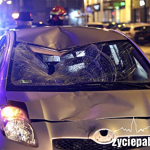 Uderzył w idącego przez jezdnię po pasach 23-letniego mężczyznę. Pieszy upadł na maskę auta, wgniótł przednią szybę i spadł na asfalt.