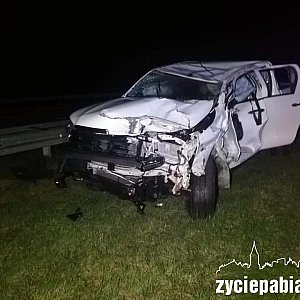 Kierujący toyotą nie zachował bezpiecznej odległości od poprzedzającego go nissana i uderzył w jego tył. Kierowca nissana nie zapanował nad autem, dachował, po czym uderzył w bariery ochronne.