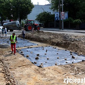 W przyszłym tygodniu archeolog będzie prowadził w tym miejscu prace wykopaliskowe. Nie zatrzymają one jednak na długo remontu. Potrwać mogą ok. tygodnia. Na innych odcinkach prace będą wznowione.