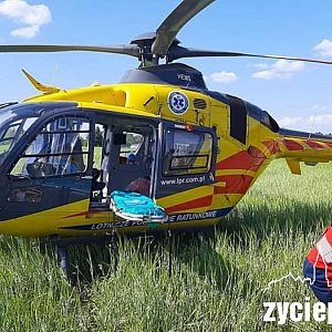 Do poszkodowanego przyjechała pogotowie. Na polu, kilkaset metrów od miejsca wypadku wylądował helikopter Lotniczego Pogotowia Ratunkowego. Medycy ostatecznie stwierdzili, że do łódzkiego szpitala zawiozą rannego samochodem.