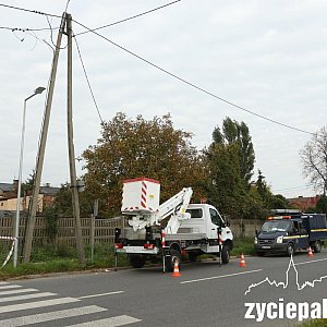 - Gdy przyjechała policja, słup leżał w poprzek jezdni. Zerwał napowietrzną linię energetyczną na długości około 100 metrów – poinformował dyżurny komendy straży pożarnej.