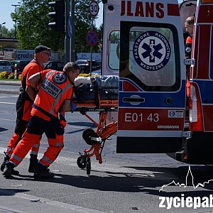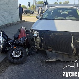Do groźnie wyglądającego wypadku doszło dziś (10 maja) około godziny 15.00 na skrzyżowaniu ulic Łaskiej i Tkackiej. Samochód osobowy marki Renault zderzył się tam z motocyklem.