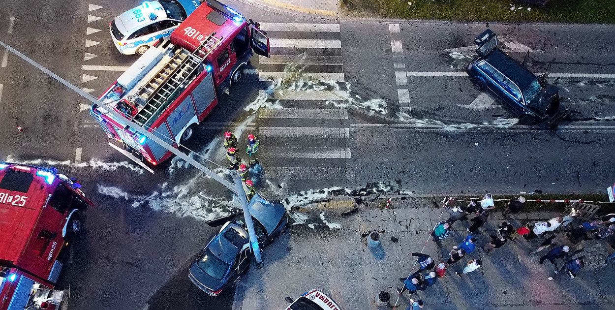 Kierowca Passata nie miał szans wyhamować. Uderzył czołowo w BMW przeszorowało po jezdni, uderzyło bokiem w słup z sygnalizacją świetlną i stanęło. W samochodzie wystrzeliły poduszki powietrzne. BMW na angielskich "blachach" (z kierownicą po prawej stronie) jechało dwóch mężczyzn w wieku 30 i 34 lat.