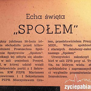 20 października 1957 r. "Społem" obchodziło 50–lecie istnienia. Całe miasto żyło tą uroczystością. Dzielnice obklejano afiszami z tekstami opisującymi historię spółdzielni, wydano gazetkę tzw. Jednodniówkę Jubileuszową, opowiadającą o jej życiu i działalności.