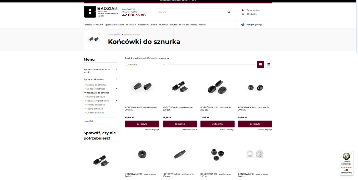 Zadbaj o perfekcyjne wykończenie! W Badziak znajdziesz końcówki do sznurka, które nadadzą Twoim produktom elegancji i trwałości.