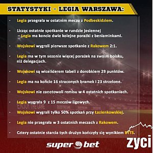 Legia nie przegrała w 3 ostatnich meczach z Rakowem.