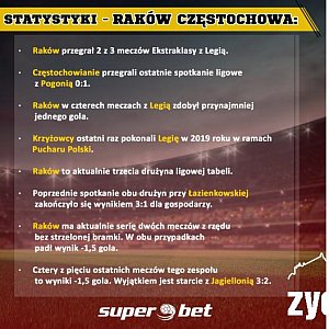 Raków to najbardziej bramkostrzelna drużyna w Ekstraklasie, a Legia nie gra najlepiej w defensywie. Czy to spotkanie będzie gwarancją goli dla typerów zakładów bukmacherskich?